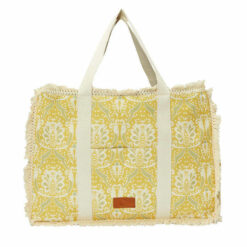 Achilleas Accessories Τσάντα Θαλάσσης με Ethnic σχέδιο Κίτρινο με Λευκό